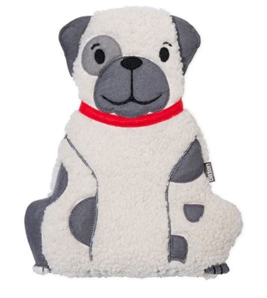 Wärmekissen in Form eines Hundes, gefüllt mit Kirschkernen und Lavendel.