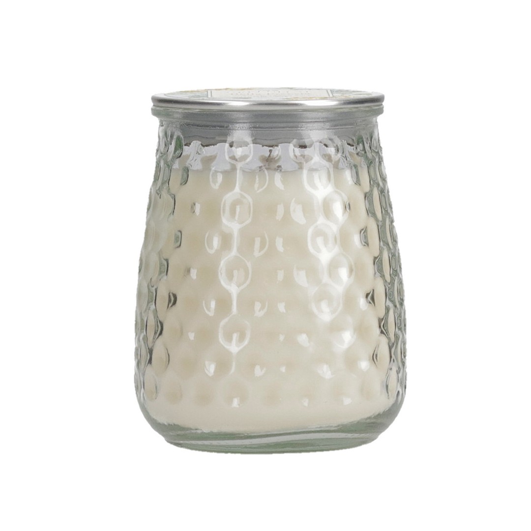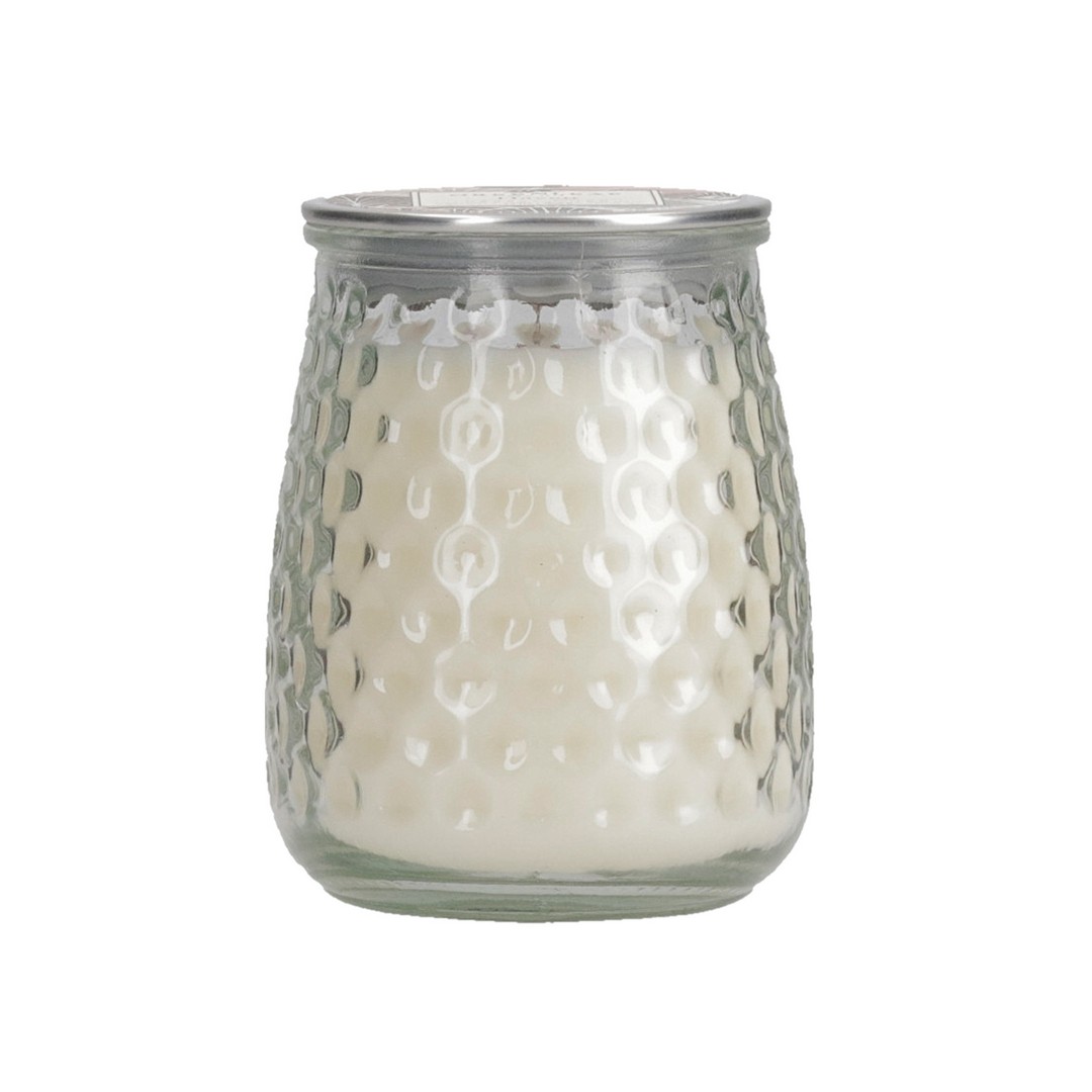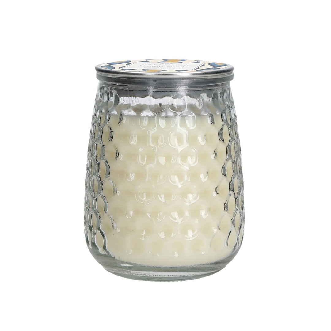 Die Wabenstruktur im Glas der Signature Candle sorgt für schöne Lichtreflexe. Die mit einem Deckel versehene Kerze hat eine Brenndauer von bis zu 100 Stunden.
